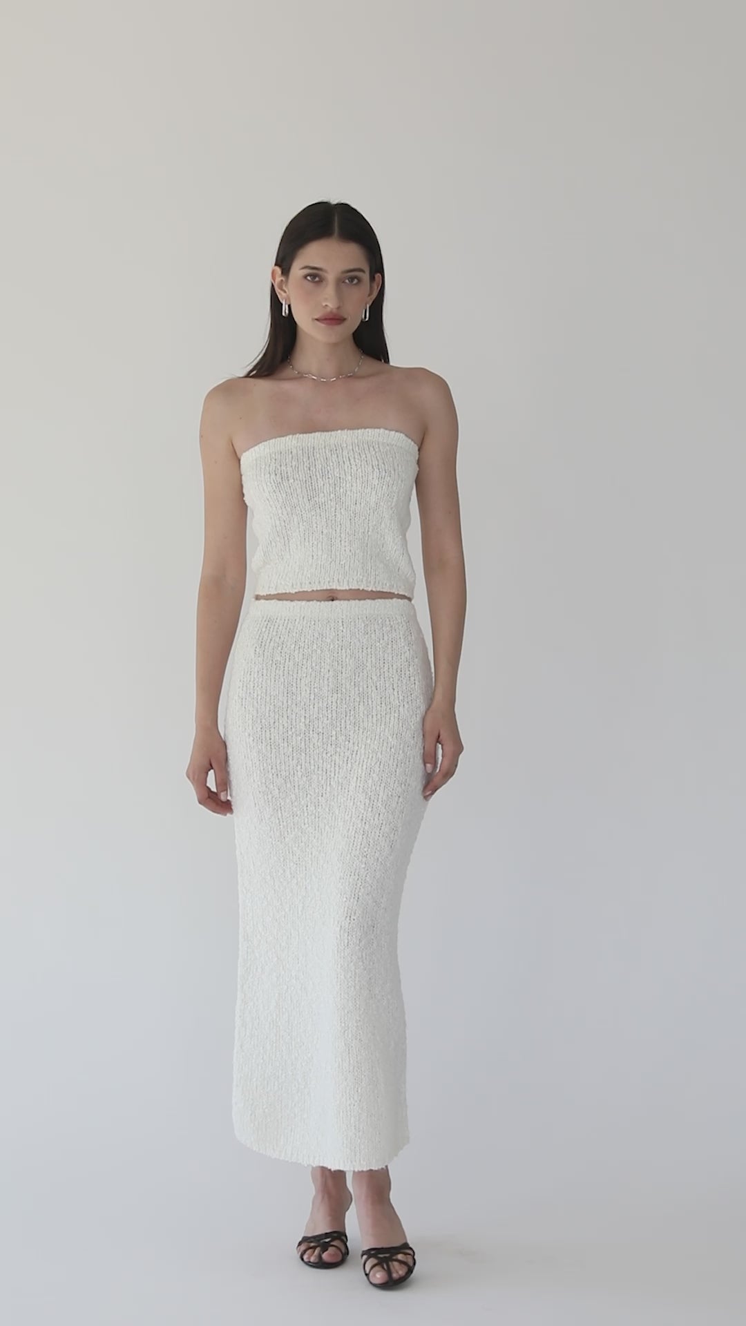 Sexy yet simple. The Kendall Set is a modern form fitting silhouette including a tube top and matching skirt which has a high back slit for ease of wear. Create a multitude of looks with the set together or separately.